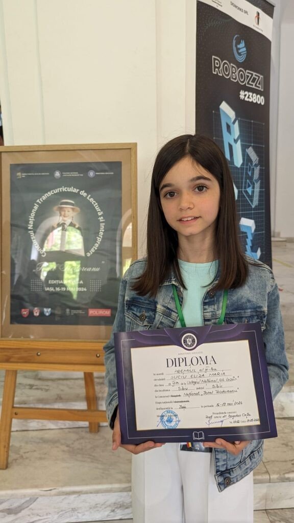 Eliza-Maria Suciu, elevă la Colegiul Național „Gheorghe Lazăr” din Sibiu, a reprezentat județul Sibiu la clasa a VI-a. Eliza a reușit o performanță remarcabilă, obținând Premiul al III-lea, cu un total de 146 de puncte din 150 posibile. La proba scrisă, punctajul obținut a fost de 96 de puncte, iar la proba orală, Eliza a obținut maximum, adică 50 de puncte.