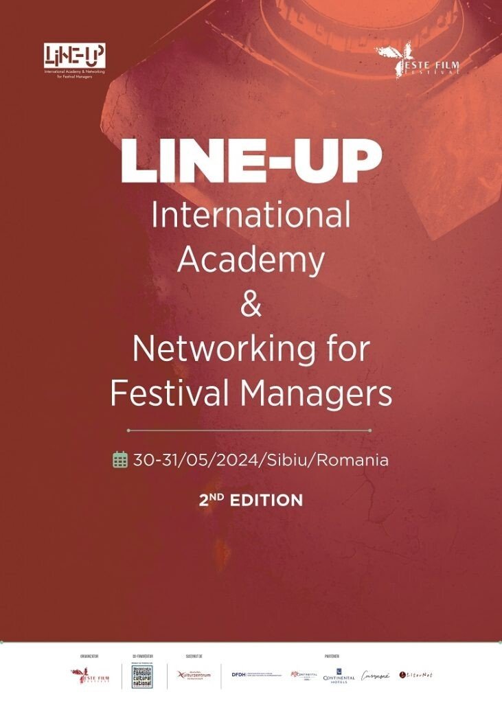 ESTE FILM Festival (29 mai – 2 iunie 2024) continuă și în acest an să contribuie la dezvoltarea industriei și culturii festivaliere din România prin cea de-a doua ediție a LINE-UP: International Academy & Networking for Festival Managers, organizată în parteneriat cu Centrul Cultural German Sibiu. LINE-UP 2024 va avea loc în perioada 30 – 31 mai, la Sibiu și va reuni 17 participanți din 3 țări și 5 mentori. Tema ediției este ”How to Pitch Your Festival”.
