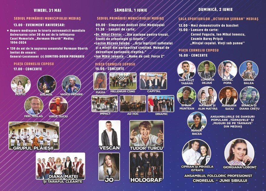 Programul complet al evenimentului programat de Primăria Mediaș care încă nu se știe dacă se va ține sau nu: