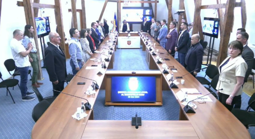 Situație jenantă la debutul ședinței de Consiliu Local Sibiu de astăzi. Conform legii la început se intonează Imnul Național al României, într-o variantă scurtă. Doar că astăzi, Imnul a fost mult mai scurt intonat, ceea ce a luat prin suprindere consilierii și chiar și pe primarul Astrid Fodor. Aceștia au rămas în picioare crezând că doar s-a întrerupt melodia.