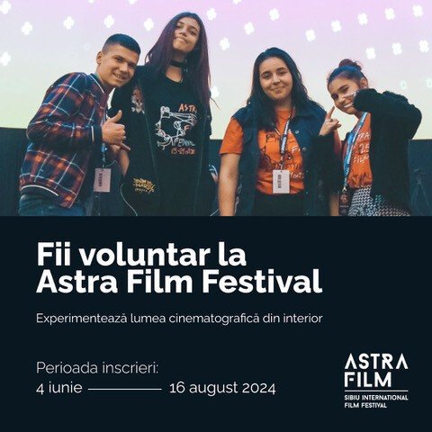 Festivalul Astra Film deschide înscrierile pentru voluntari și acceptă persoane de orice vârstă, singura condiție fiind împlinirea vârstei minime legale pentru activități de voluntariat (14 ani). Înscrierile se pot face în perioada 4 iunie – 19 august prin completarea unui formular disponibil pe site-ul festivalului: https://www.astrafilm.ro/voluntar/inscriere. În acest an, Astra Film Festival se va desfășura la Sibiu în perioada 20-27 octombrie 2024.