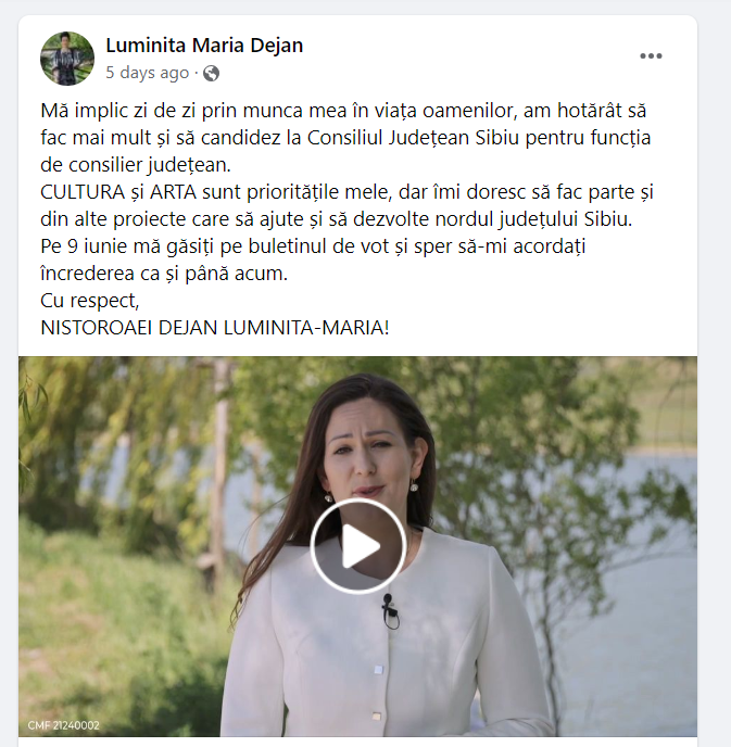 Doar că doamna Dejan are un statut special: este candidat al PSD la Consiliul Județean Sibiu! Și chiar acum se află în campanie! Deci ar merita o sesizare că și-a făcut campanie electorală prin prezența scenică?
