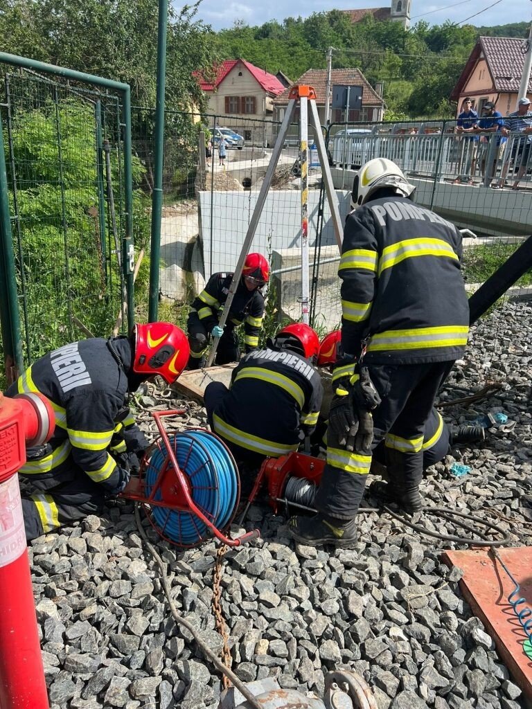 Alertă generală în localitatea sibiană Hașag. Din primele informații, trei persoane au căzut într-un bazin adânc.