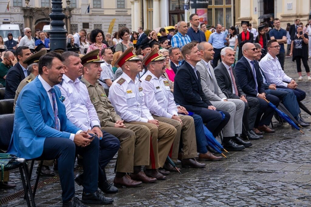 Așteptată cu mult entuziasm de către studenții ULBS și AFT, dar și de către părinți, autorități și cadrele didactice universitare ale celor două instituții de învățământ superior, GAUDEAMUS – Sărbătoarea absolvenților a adus și pentru promoția 2024 emoția îmbrăcării robelor de absolvire și muzica fanfarei militare, în ciuda ploii mărunte.