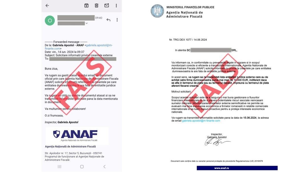 Atragem atenția că această adresă de e-mail NU aparține ANAF și nu trebuie să dați curs solicitărilor!