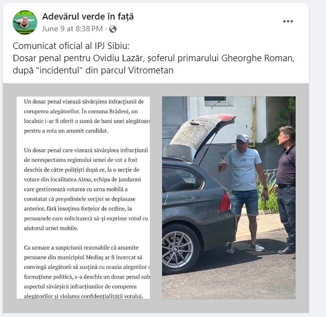 Horațiu Potra, mercenar cu trupe în Africa, a candidat la Primăria Mediaș din partea Partidul Patrioților și a pierdut în fața actualului primar Gheorghe Roman. Totuși, diferența mică de voturi, a fost generată și de o amplă campanie online în ziua alegerilor prin care oamenii lui Potra au spus că șoferul primarului, Ovidiu Lazăr, împărțea bani alegătorilor. Deși pe video-urile și foto postate de oamenii lui Potra nu se vedea nimic concret, ei afirmau că se cumpără voturi. SIBIU INDEPENDENT a intrat în posesia procesului-verbal întocmit de polițiștii prezenți la fața locului. Iată dovada campaniei mincinoase: