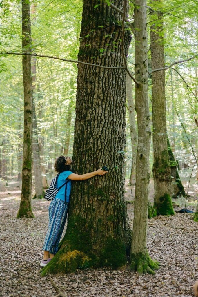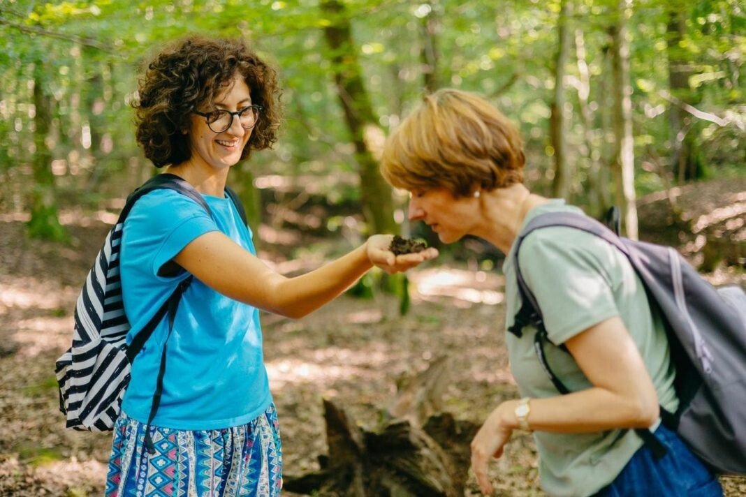 „Am realizat că pădurea este poate cel mai mare furnizor de energie și liniște interioară și că aici, în jurul Sibiului, sunt numeroase locuri în care pot fi organizare băi de pădure”, spune Corina care, aproape în fiecare sâmbătă, vine în pădurea de lângă Portal Village.