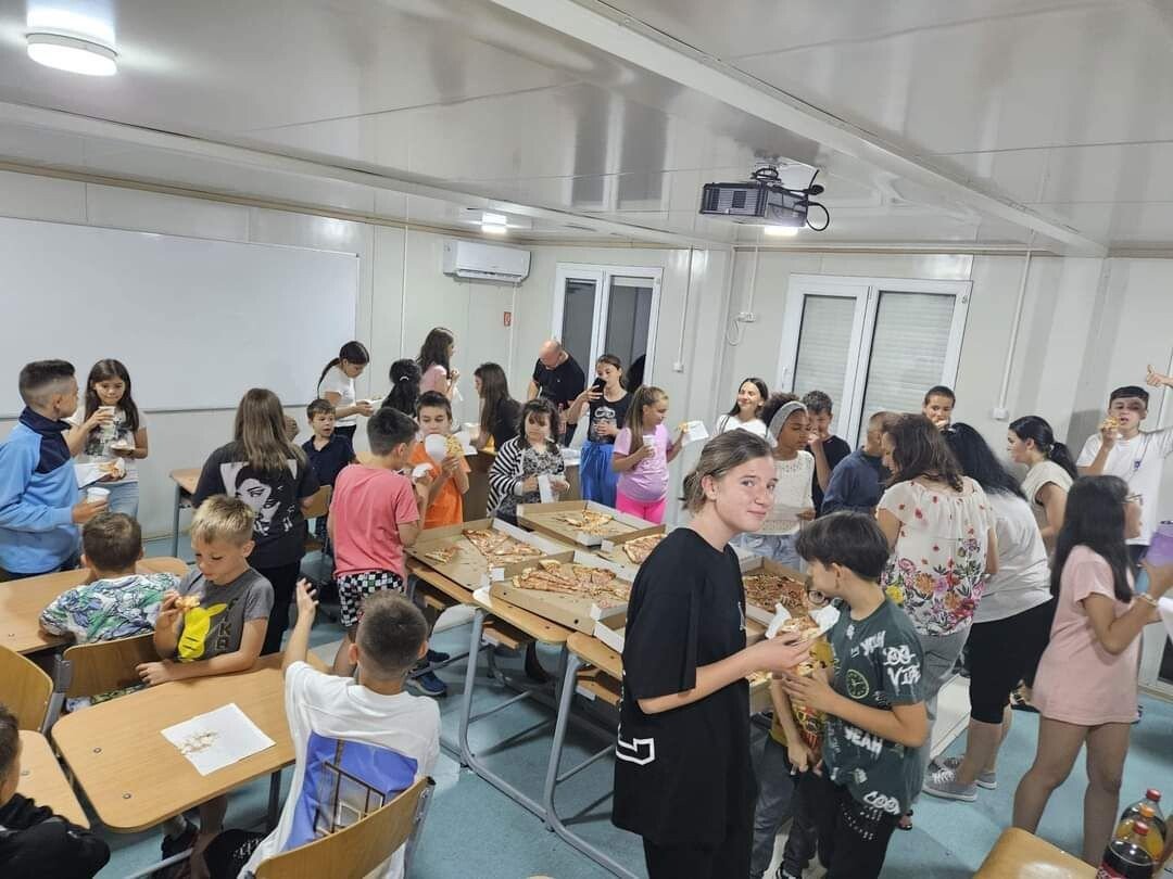 Pentru a încheia seara într-un mod cât mai plăcut elevii au primit din partea Echipei Galbene pizza și suc.