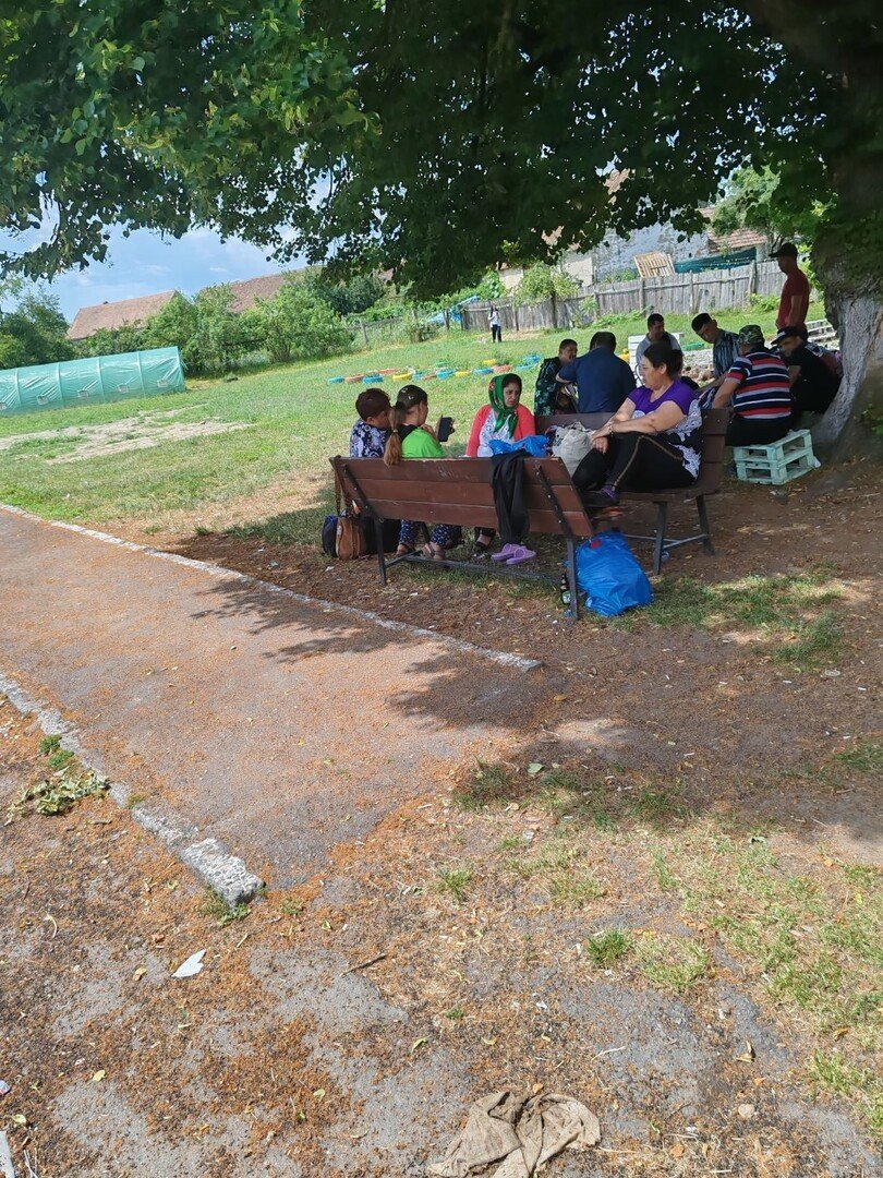 Toți pasagerii sunt în curtea școli din Porumbacu de jos. Se așteaptă un autocar să-i preia. 5 persoane au decis să plece cu trenul.Toți pasagerii autocarului plecau spre Germania și urmau să schimbe la Sibiu autocarul.