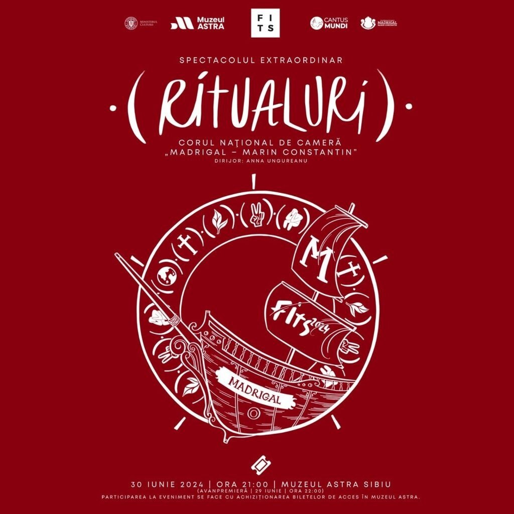 Corul Madrigal și Festivalul Internațional de Teatru de la Sibiu invită publicul la „Ritualuri”, un spectacol extraordinar prezentat de Madrigal în premieră la Muzeul ASTRA, dedicat ritualurilor universale – pentru pace, de lume, religioase sau pentru natură. După spectacol, 12 scene ale ritualurilor vor fi activate la Muzeul ASTRA până la ora 01:00 noaptea.