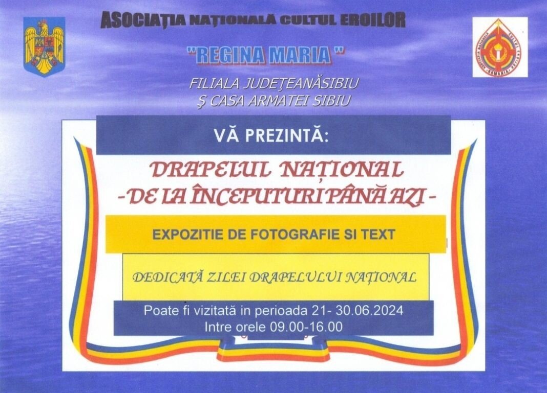Ziua Drapelului Național – simbol al identității românești – este celebrată de Asociația Națională Cultul Eroilor” Regina Maria „Filiala Sibiu prin intermediul vernisajului expoziției „Drapelul național de la începuturi și până azi” (găzduită de foaierul Cercului Militar Sibiu) respectiv prin festivitatea de premiere atât a olimpicilor sibieni la disciplina istorie cât și a membrilor Cercurilor „Cultul Eroilor” aferente instituțiilor de învățământ preuniversitar din județul Sibiu.