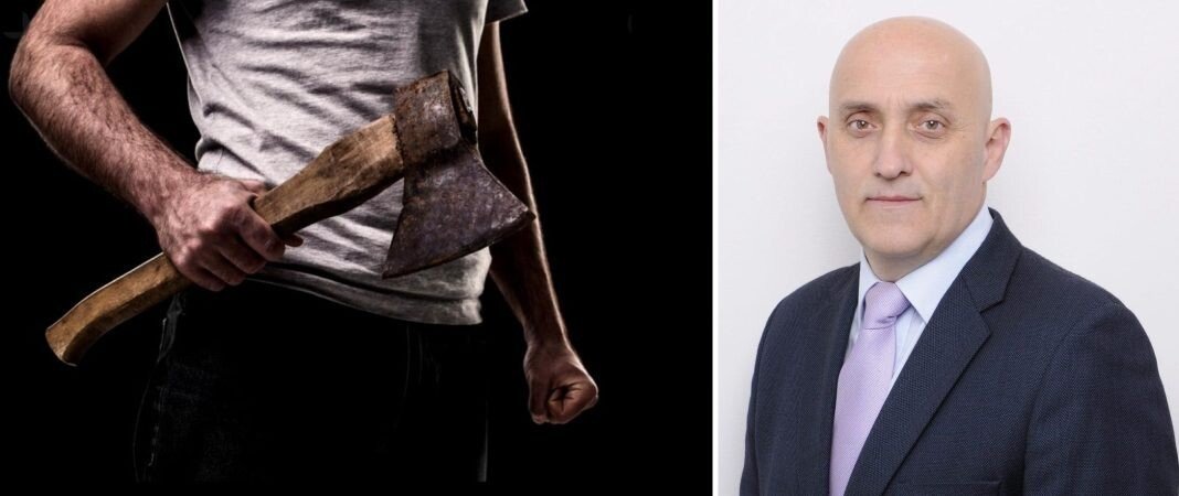 Înarmat cu un topor a lovit poarta casei lui Potra. Apoi s-a dus singur la Poliție și s-a predat.