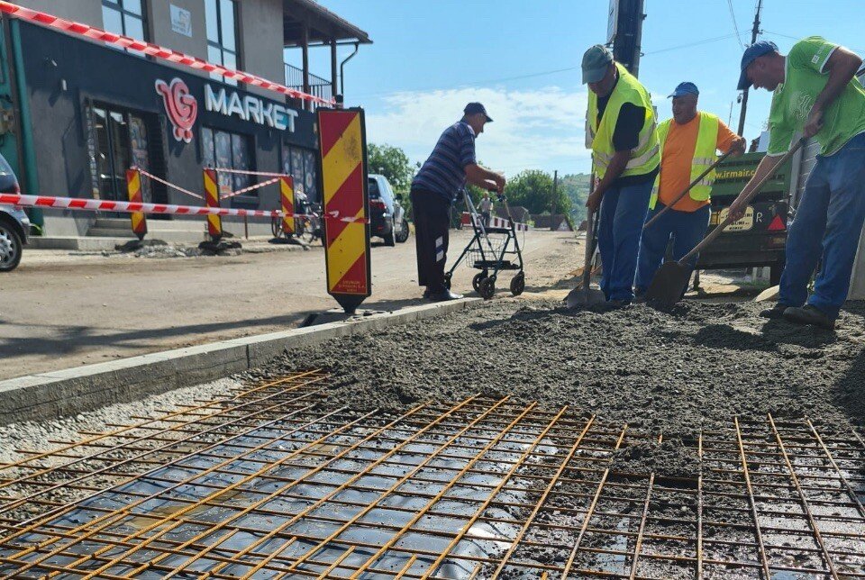– aducere la cotă cămine, montat capac carosabil, montat țeavă PVC, montat bordură mare, suprastructură drum – balast, turnat betonpe DJ141A intravilan Șeica Mare