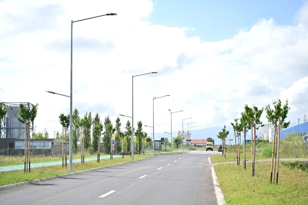 - Un drum cu 2 benzi în lungime de aproape 1 km și trotuare pe ambele părți ale străzii