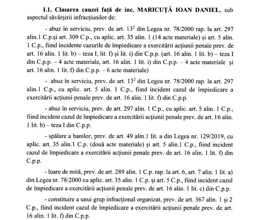 Procurorul DNA a decis să claseze dosarul Maricuța după 10 ani de anchete. Pornit în 2014 cu o intervenție în forță a orgenlor legii, cu 22 de ore de audieri, cătușe și mult tam-tam public, acum la 10 ani distanță, toată seria de dosare conexe deschise în acest dosar au fost clasate. Fostul primar al Șelimbărului, Daniel Maricuța era anchetat de procurori pentru abuz în serviciu, spălare de bani, luare de mită și constituire a unui grup infracțional organziat.