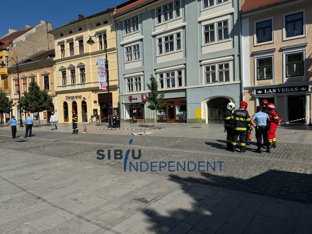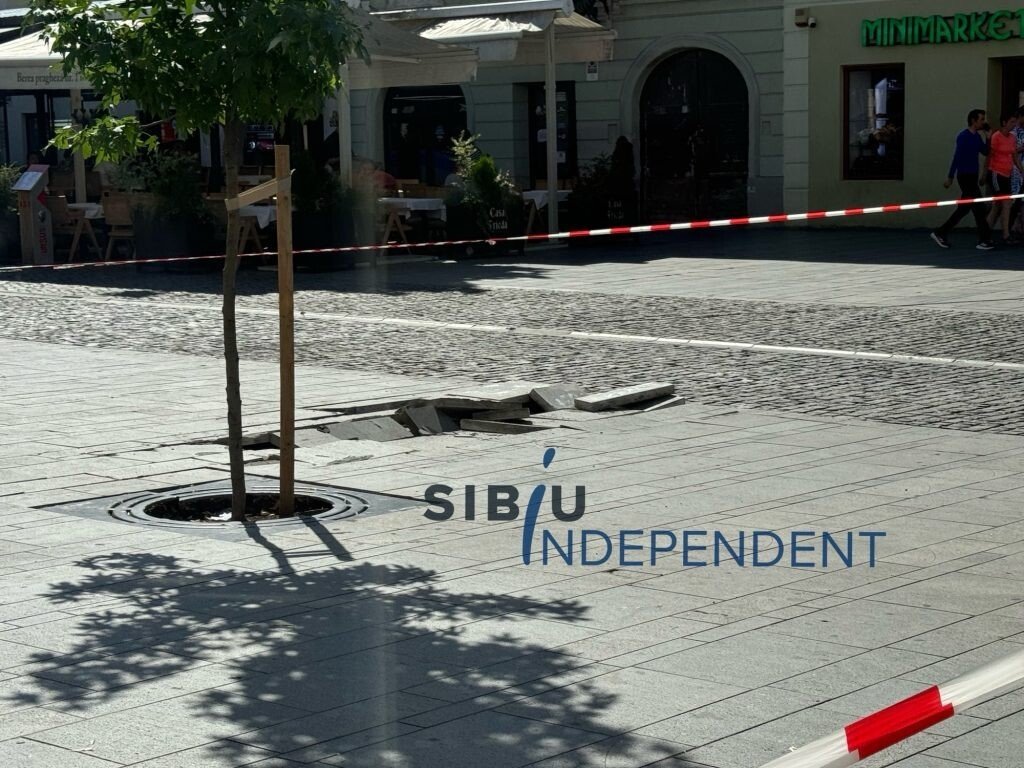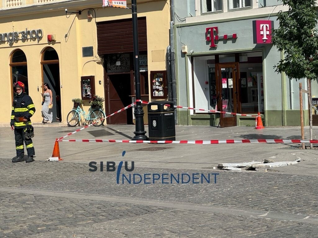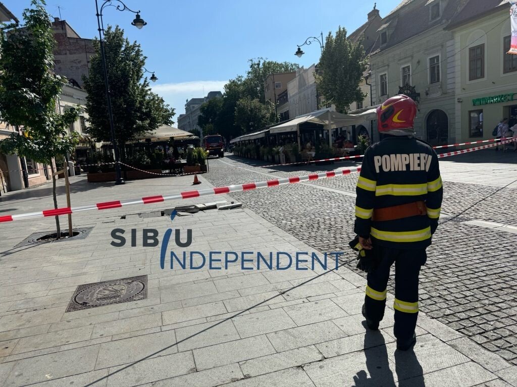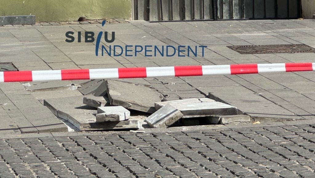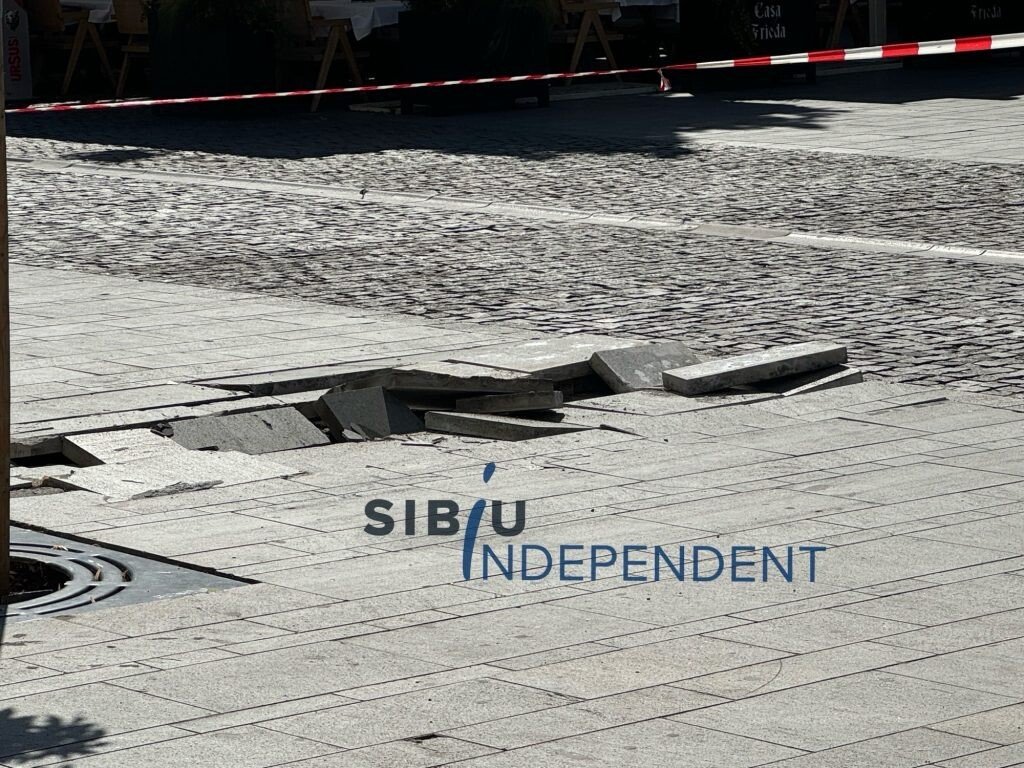 A fost panică mare pe pietonala Nicolae Bălcescu din municipiul Sibiu. O explozie subterană a distrus mai multe pavaje grele de ciment.