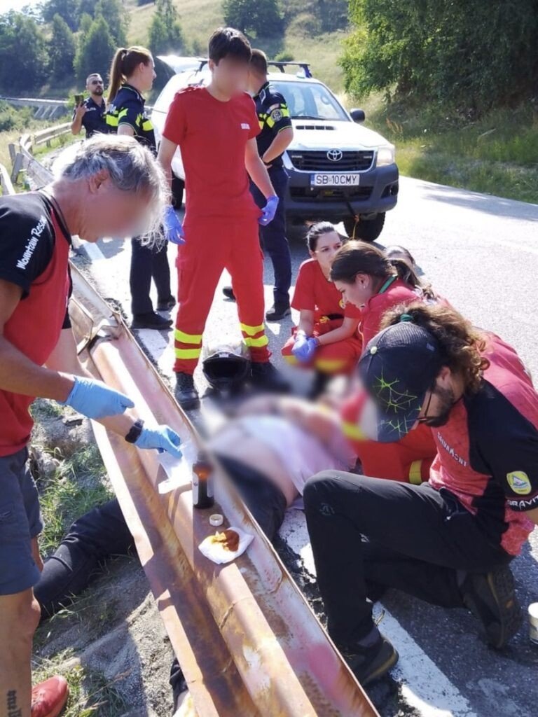 Conform IPJ SIBIU, motociclistul s-a dezechilibrat după ce o albină i-ar fi intrat în cască. În urma impactului cu solul, acesta a suferit un traumatism toraco-abdominal, fiind transportat la UPU Sibiu. SPJ Salvamont Sibiu a fost prima echipă de intervenție care a ajuns la fața locului și care i-a acordat motociclistului primul ajutor.