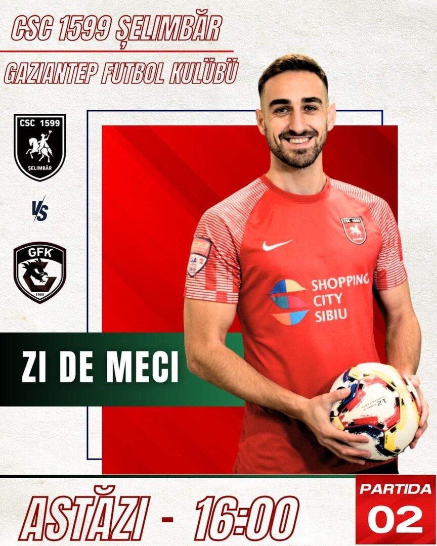 Echipa de liga a doua CSC Șelimbăr va disputa duminică o nouă partidă de pregătire. Meciul va avea loc în Turcia și va opune echipei sibiene pe Gaziantespor.
