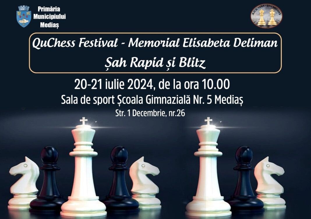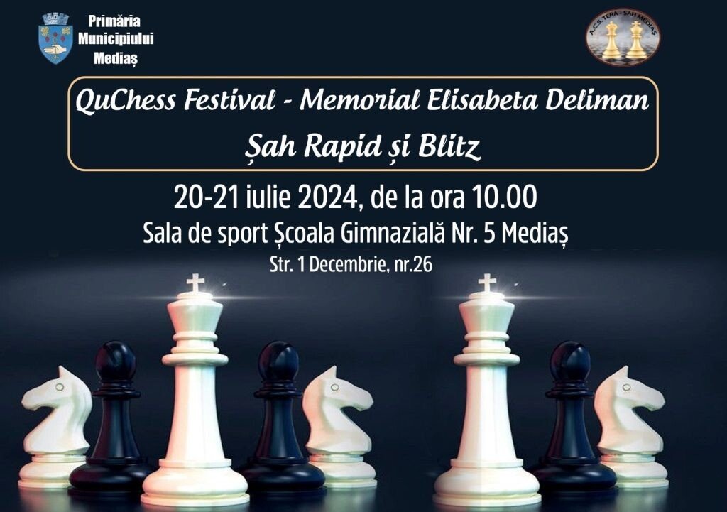 Asociația Club Sportiv Tera Șah, în parteneriat cu Primăria Municipiului Mediaș șiClubul Sportiv Municipal Mediaș organizează în perioada 20 – 21 iulie 2024 competiția de șah QuChess Open Tera Șah – Memorial Elisabeta Deliman.