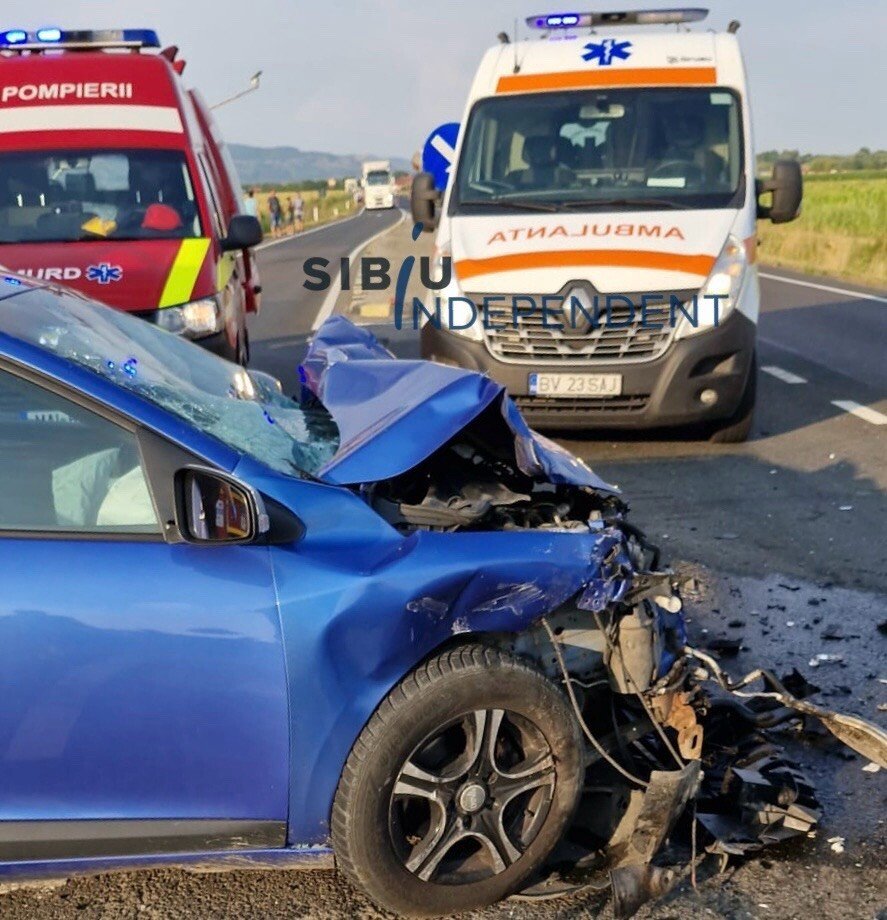 Conform polițiștilor rutieri sibieni, un conducător auto în vârstă de 61 de ani, din Victoria ar fi intrat în coliziune cu un autoturism condus de o sibiancă în vârstă de 19 ani. Patru persoane au fost rănite în urma accidentului rutier, mai precis cei doi șoferi, precum și două femei, ambele din Victoria, în vârstă de 82 de ani și 55 de ani.