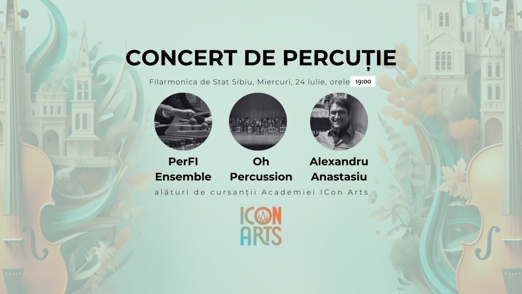Festivalul ICon Arts Transilvania 2024 continuă cu evenimente muzicale de excepție. La Filarmonica de Stat Sibiu, miercuri, 24 iulie, orele 19:00, are loc concertul de percuție susținut de Oh Percussion Ensemble și Ensemble PerFI, avându-l drept invitat pe Alexandru Anastasiu.