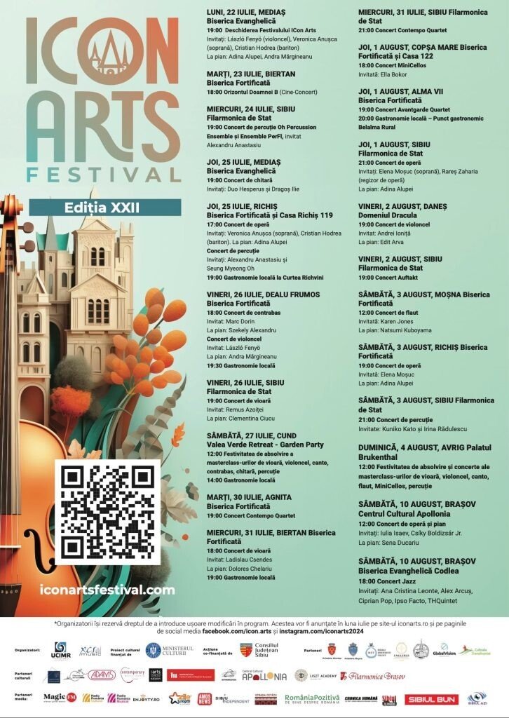 Festivalul ICon Arts Transilvania este unul dintre cele mai longevive festivaluri dedicate muzicii clasice, jazz și celor mai efervescente creații din domeniul artelor contemporane. Ediția cu numărul 22 propune un program eclectic, multidisciplinar și multicultural, în care virtuozitatea muzicii se împletește cu atmosfera pitorească a satelor și orașelor transilvănene și degustarea de preparate tradiționale, spre deliciul publicului.