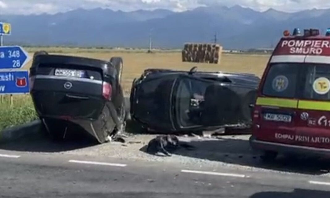 Conform primelor date, două mașini au intrat într-o coliziune violentă și s-au răsturnat în afara părții carosabile. La fața locului sunt deja prezente echipajele de prim-ajutor SMURD. Din fericire nimeni nu a fost rănit.