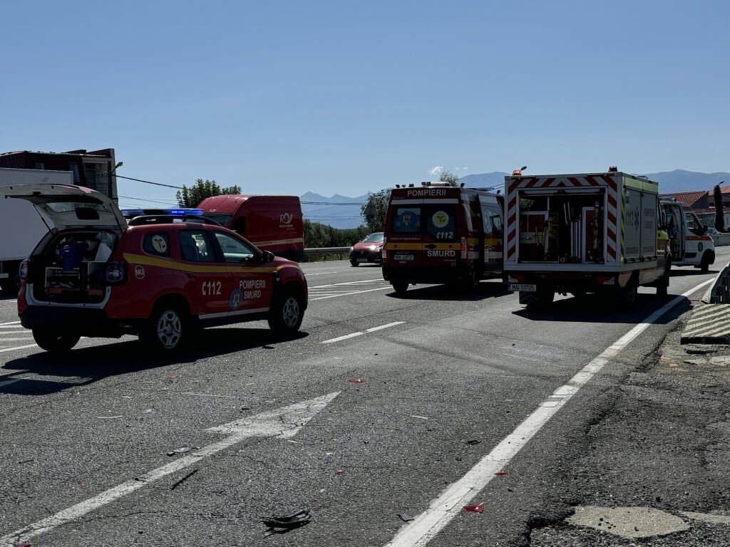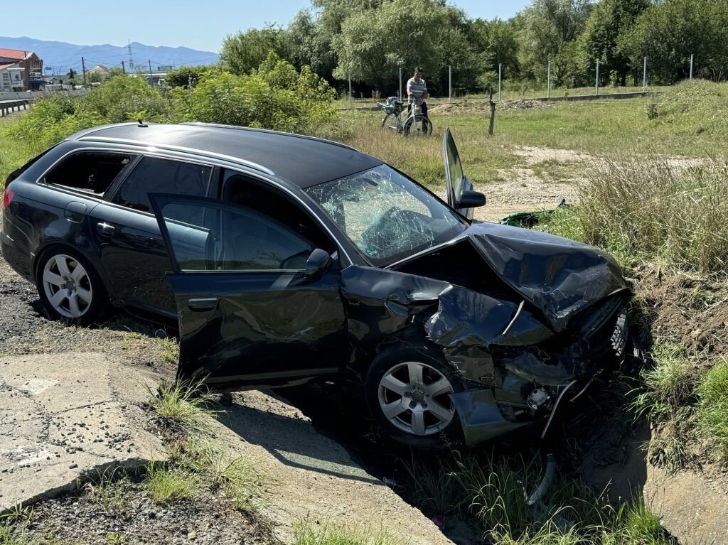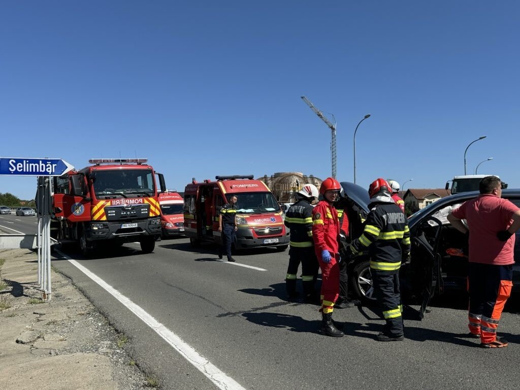 Două mașini au intrat într-o coliziune violentă, în urmă cu puțin timp, la intersecția DN1 cu localitatea Șelimbăr. În urma impactului, una dintre mașini a ajuns în șanț.