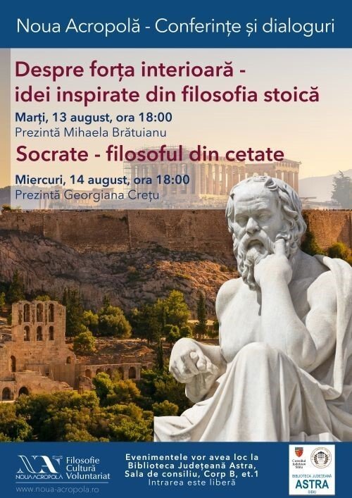 Marți, 13 august 2024 de la ora 18:00 se vorbește „Despre forța interioară” pornind de la ideile filosofilor stoici.