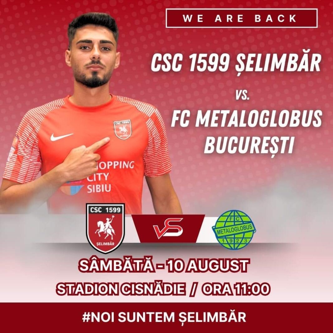 CSC Șelimbăr începe liga a doua cu meciul împotriva celor de la Metaloglobus. Partida are loc sâmbătă, de la ora 11.00 pe stadionul din Cisnădie.