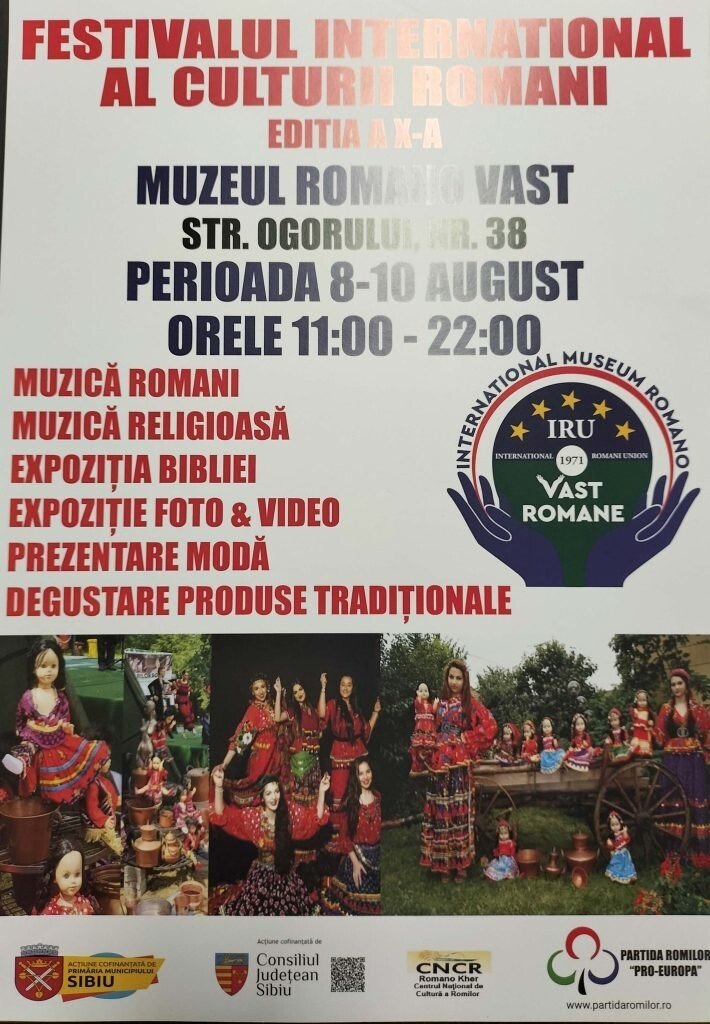 Asociația Internațional Romani Union – IRU organizează în perioada 8-10 august cea de-a X-a ediție a Festivalului Internațional al Culturii Romani la Sibiu. Evenimentul este cofinanțat de Primăria Sibiu prin Agenda Culturală 2024.