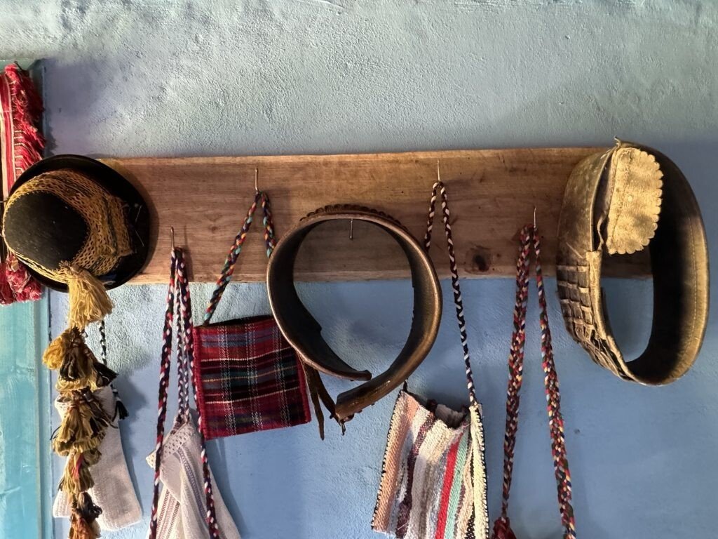 Interiorul casei bătrânești, plină de culoare, cuprinde 3 încăperi: prispa casei, o tindă la intrare, o cameră de locuit și un spațiu de bucătărie. În cele trei încăperi sunt prezentate piese de mobilier vechi, adunate de-a lungul anilor, portul popular al adulților și copiilor, precum și alte obiecte de uz casnic sau gospodăresc.