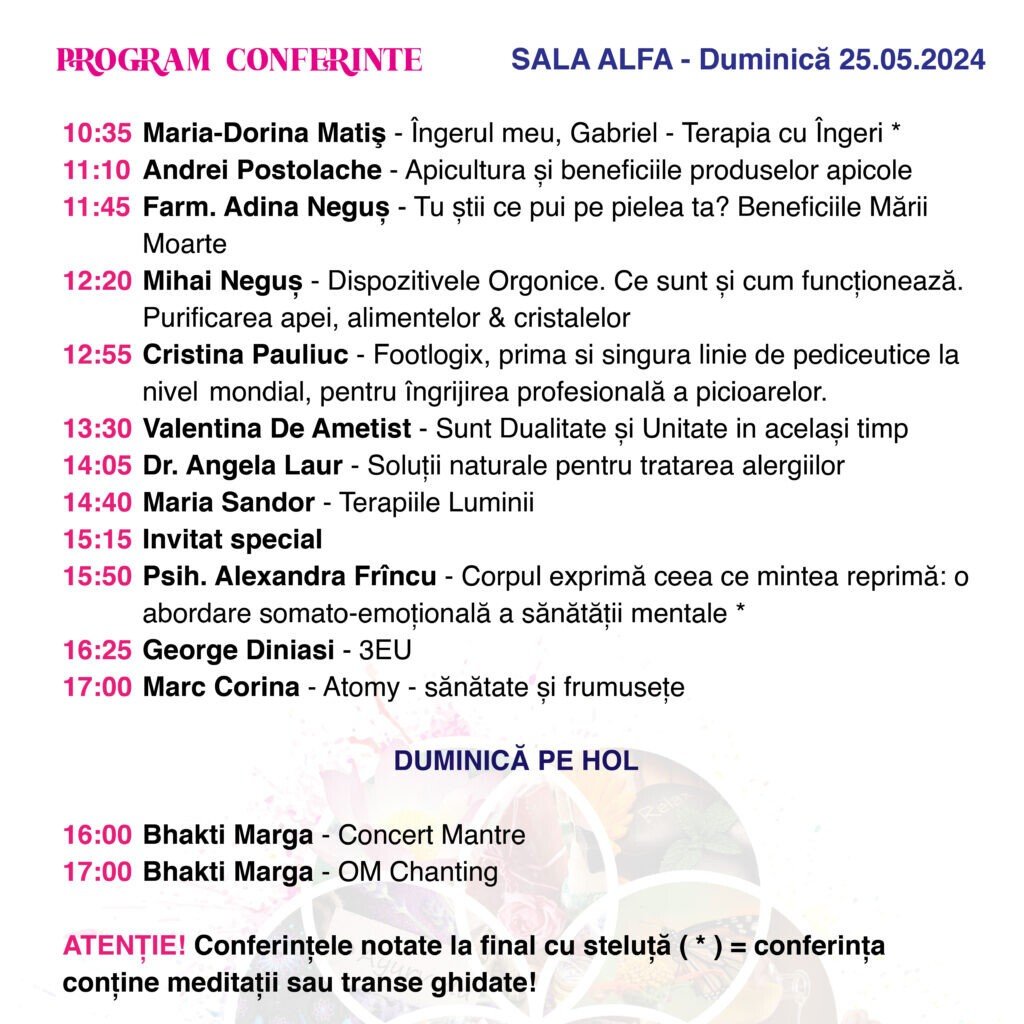 Pe lângă cele peste 50 de standuri de unde pot fi achiziționate produse variate, organizatorii vin în întâmpinarea celor interesați cu un program amplu de informare. Astfel, vizitatorii pot participa la peste 60 de conferințe, workshopuri, dar și sesiuni demonstrative, evaluări sau terapii.