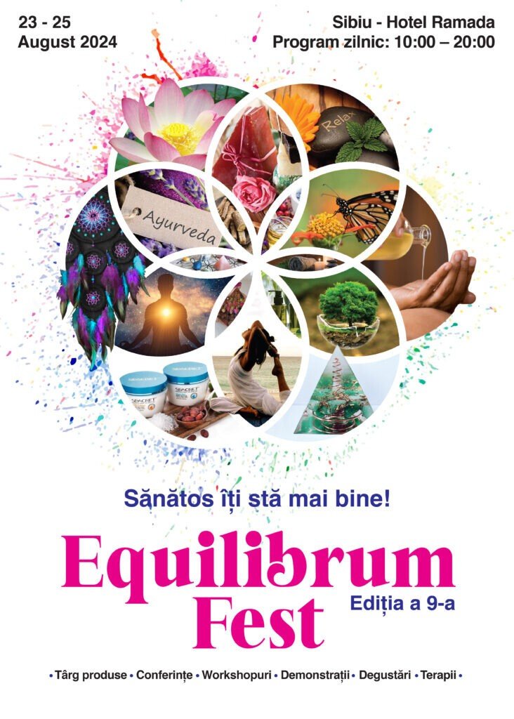 Sub motto-ul SĂNĂTOS ÎȚI STĂ MAI BINE!, Equilibrum Fest, cel mai complex TÂRG-FESTIVAL de medicină integrativă, terapii complementare, alternative și stil de viață sănătos, a traversat 5 dintre orașele țării noastre, iar la finalul lunii august revine pentru a 3-a oară la Sibiu!