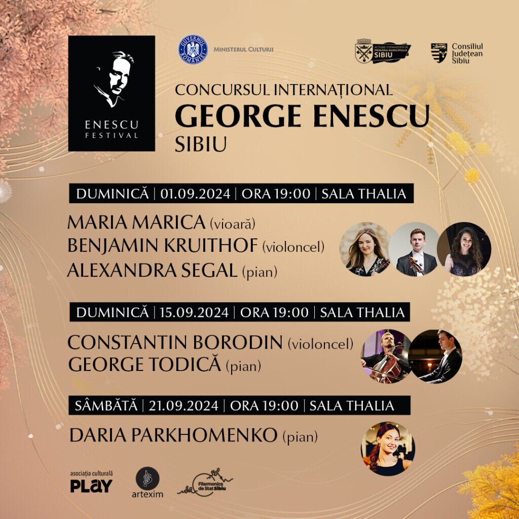 În perioada 1-21 septembrie 2024, Asociația Culturală Play aduce pe scena Sălii Thalia șase tineri artiști desăvârșiți, în cadrul celor trei recitaluri extraordinare desfășurate sub egida Concursului Internațional George Enescu, organizat pentru al treilea an la Sibiu.