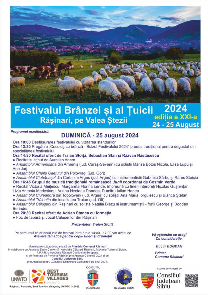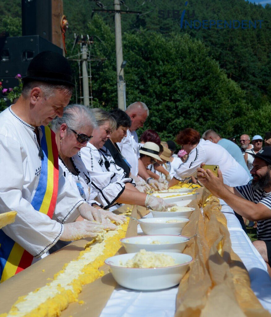 Răşinărenii și-au doborât și de această dată, propriul record, la Festivalul Brânzei şi al Ţuicii! Bulzul sau cocoloșul cu brânză, cum este cunoscut în zona Sibiului, a avut peste 60 metri lungime. Spectatorii au degustat la final din preparat alături de un pahar de țuică.