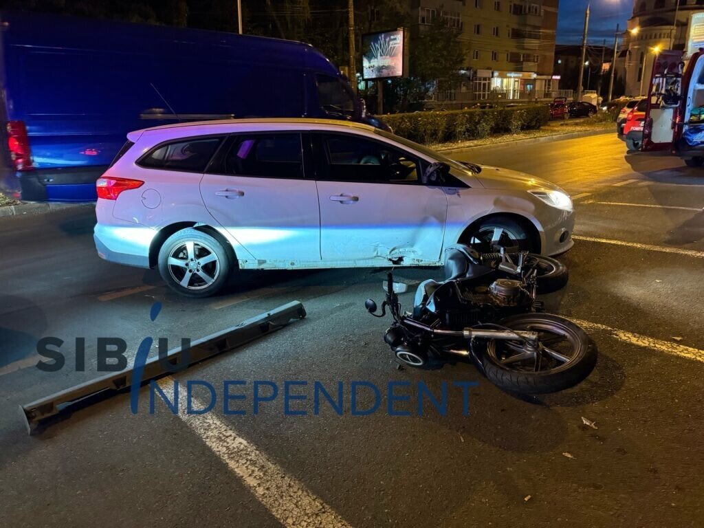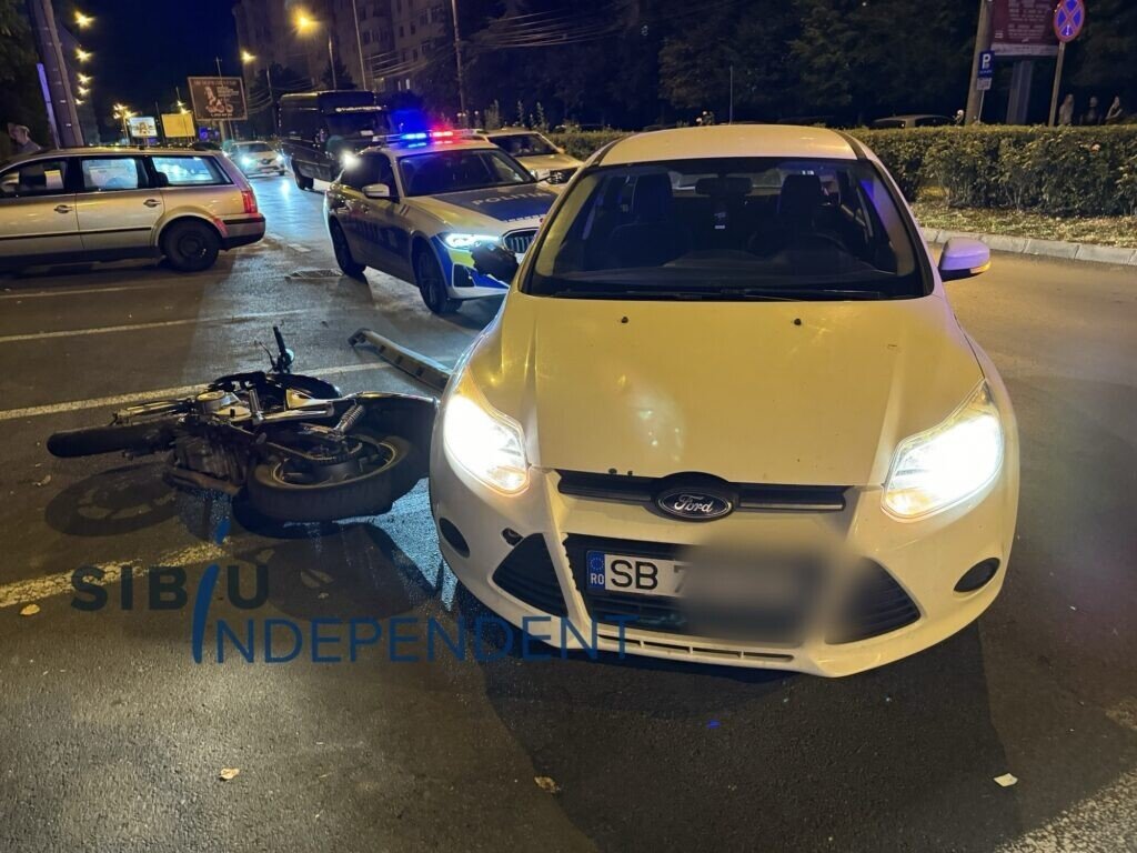 Conform primelor date, șoferul unei mașini înmatriculate în județul Sibiu, la efectuarea virajul la dreapta, pentru a pătrunde într-un loc de parcare, nu l-a observat pe motociclistul care circula pe aceeași direcție, intrând în coliziune cu acesta.