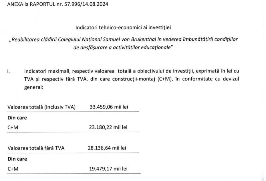 Primăria Sibiu intenționează să acceseze fondurile care s-au dechis în Regiunea Centru pe axa 6 pentru educație. Proiectele se pot depune până în 14 ianuarie 2025. Suma totală alocată pe regiunea Centru este de aproape 11 milioane de euro. Dar în proiectul înaintat primăriei de o firmă angajată de Parohia Evanghelică se arată un cost total estimat de peste 33 milioane de lei, adică 6,5 milioane de euro. Ori este clar că nu va fi aprobată o asemenea sumă din fondurile europene, fiind vorba de mai mult de jumătate din tot bugetul regiunii centru pentru Axa 6, opțiunea 6.3.