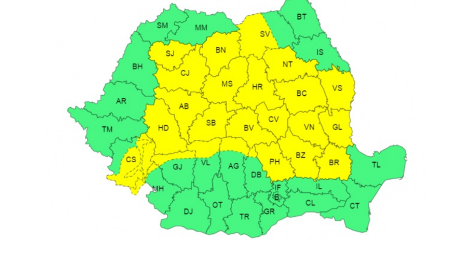 Administraţia Naţională de Meteorologie (ANM) a emis, marţi, o atenţionare nowcasting Cod galben de averse torențiale, descărcări electrice și intensificări ale vântului (rafale în general de 50…60 km/h). Pe alocuri vor fi vijelii și grindină. Cantitățile de apă vor fi de 15…25 l/mp și izolat de peste 30…40 l/mp.