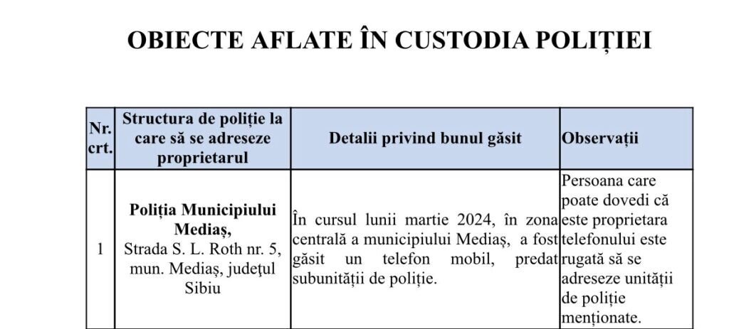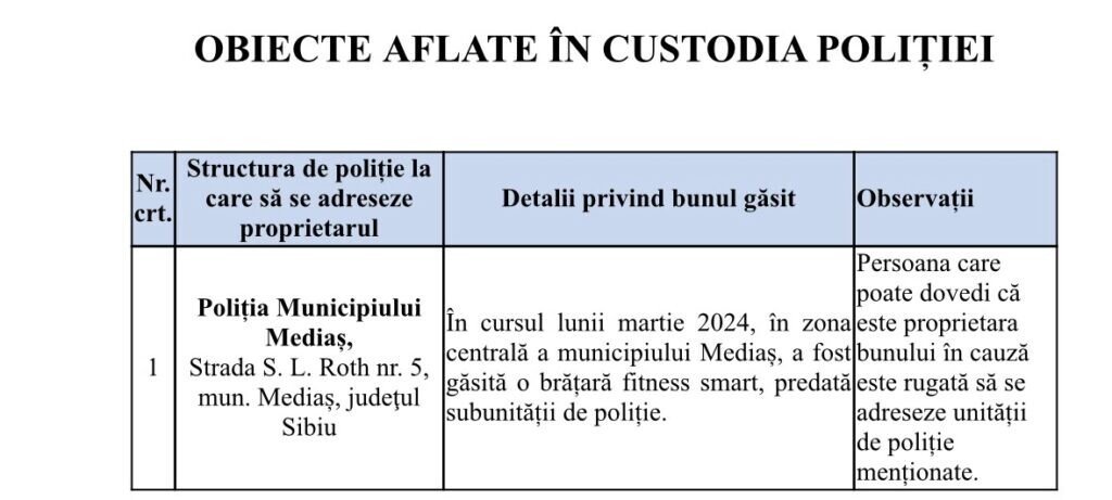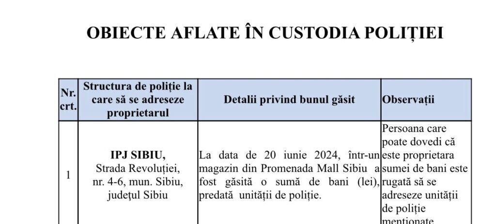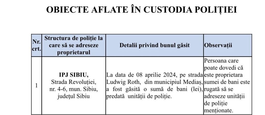 Poliția Sibiu a realizat pe site-ul propriu, o secțiune specială pentru lucrurile găsite pe raza județului Sibiu.