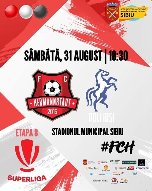Partida dintre FC Hermannstadt și Politehnica Iași se va juca sâmbătă, de la ora 18.30, pe stadionul Municipal din Sibiu.