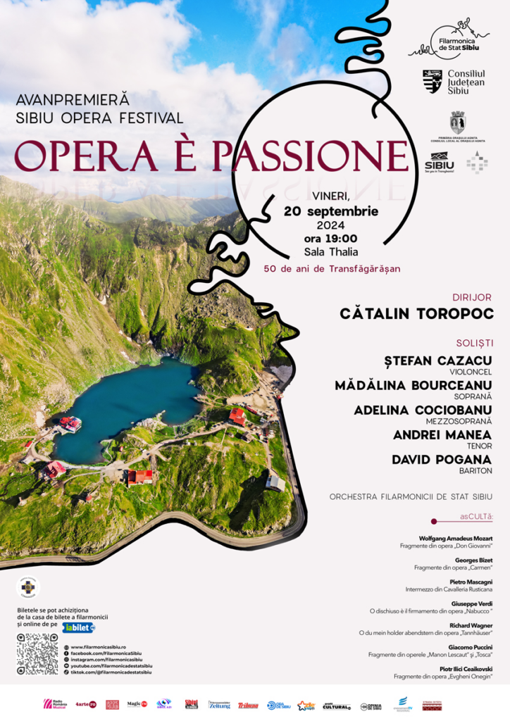 Filarmonica de Stat Sibiu va găzdui vineri, 20 Septembrie 2024, între orele 19:00 – 20:30, avanpremiera concertului simfonic „Opera È Passione”, din cadrul celei de a XXIII-a ediții Sibiu Opera Festival.