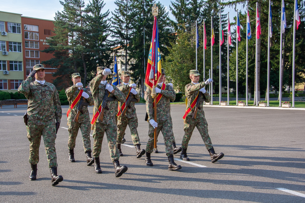 Miercuri, 4 septembrie, într-un cadru festiv, studenţii anului I au participat la prima lor ceremonie militară, în cadrul căreia a fost prezentat drapelul de luptă al unității, simbolul onoarei, vitejiei și gloriei militare care evocă trecutul de luptă al poporului român pentru libertatea națională și tradițiile unității.