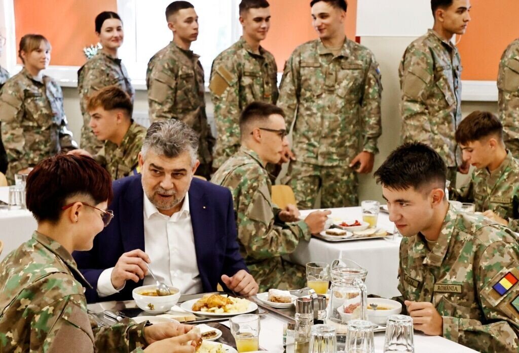 Deși nu era anunțată în programul oficial, Ciolacu a fost la Academia Forțelor Terestre, așa cum a anunțat ieri ziarul SIBIU INDEPENDENT. Aici a luat masa cu studenții academiei. „Sunt tineri. Sunt frumoși. Sunt deștepți. Ei sunt viitorii lideri ai Armatei Române. A fost o plăcere să iau masa astăzi cu studenții Academiei Forțelor Terestre “Nicolae Bălcescu” din Sibiu. E drept, nu am mâncat fasole verde teci, dar a fost foarte foarte bun.”