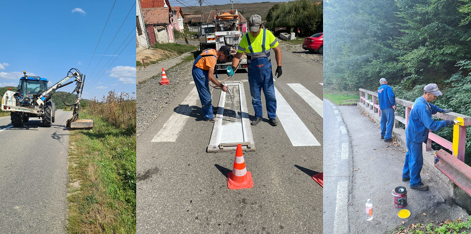– marcaje rutiere longitudinale și transversale pe DJ 143B int. autostradă Săliște – Amnaș, DJ 104G intravilan Nou și Roșia, DJ 106 int. DJ 105A – int. DJ 106S
