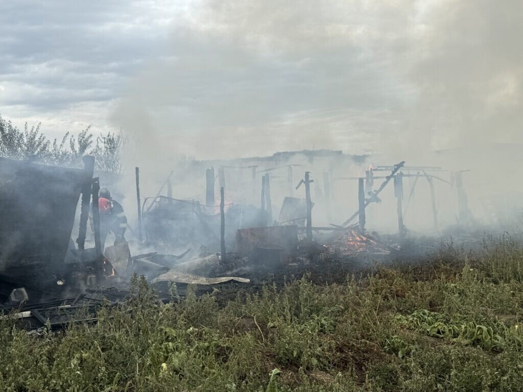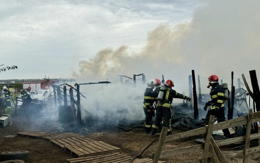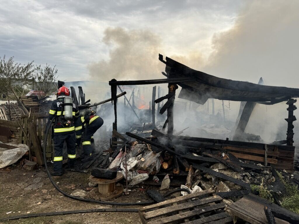 ACTUALIZARE: În urma incendiului a ars o anexă de aproximativ 150 mp, aproximativ 60 de baloți de fân depozitați în interior și alte bunuri depozitate. De asemena au murit 2 porci și 7 păsări. Cauza probabilă de izbucnire a incendiului a fost jarul căzut dintr-o sobă cu acumulare de căldură, improvizată.