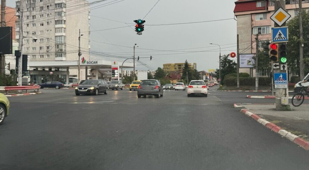 Am constatat și noi faptul că, neavând marcajele trasate, șoferii țin drept de volan și ajung pe banda destinată virajului la stânga. Apoi claxoane și nervi pentru că la „verde stânga”, ei nu înaintează, crezând că așteaptă regulamentar la semaforul pentru „înainte”. Am văzut inclusiv mașini pe banda pentru stânga, care semnalizau și forțau cele două coloane pentru înainte. De ce? Pentru că de câteva săptămâni, nimeni nu a trasat câteva marcaje.
