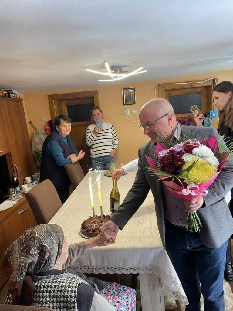 La aniversarea sa de 90 de ani, o vârstnică din comuna Sadu a primit o vizită surpriză din partea reprezentanților Primăriei, care i-au oferit flori, tort de ciocolată și i-au urat cele mai frumoase gânduri.