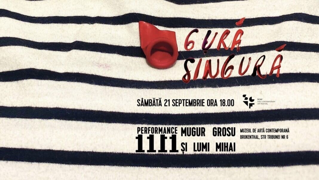 111invers1 ajunge cu performance-ul „Gură singură” la Sibiu – orașul care încă găzduiește prima lucrare (murală) a tandemului format din Mugur Grosu și Lumi Mihai.