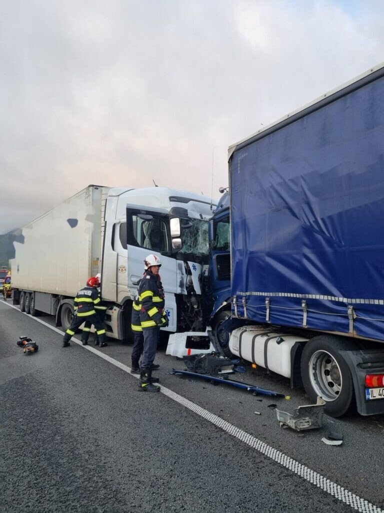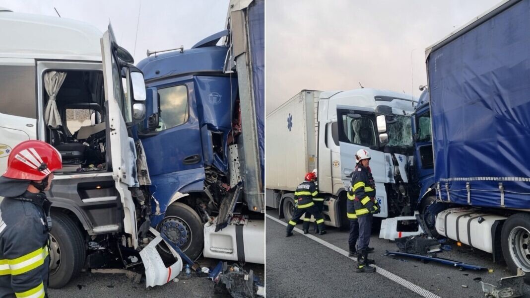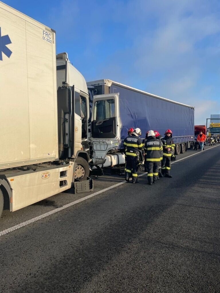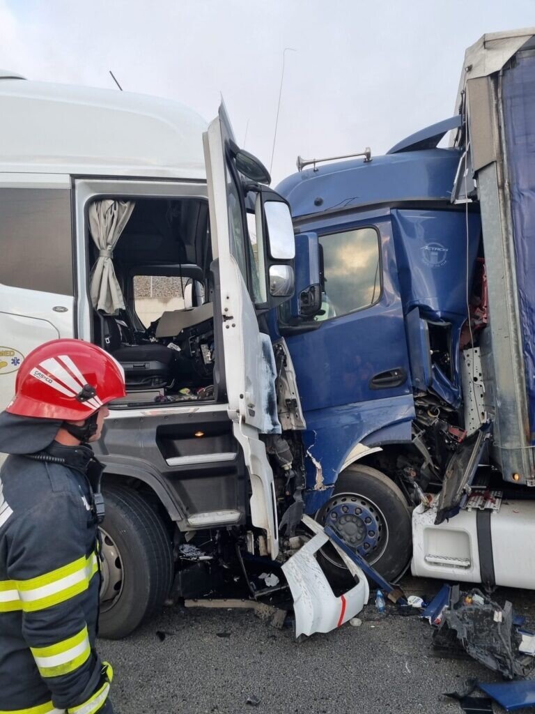 Aici, două autocamioane au intrat în coliziune frontală. Conform polițiștilor rutieri sibieni, pe fondul neatenției în conducere, șoferul ansamblului condus spre A1 de către un clujean în vârstă de 32 de ani, a pătruns pe contrasens și a lovit un alt autocamion condus spre DN 7.